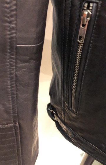 Skinnjacka i mjukt lammskinn. Bikermodell med stå krage. Bra med fickor.