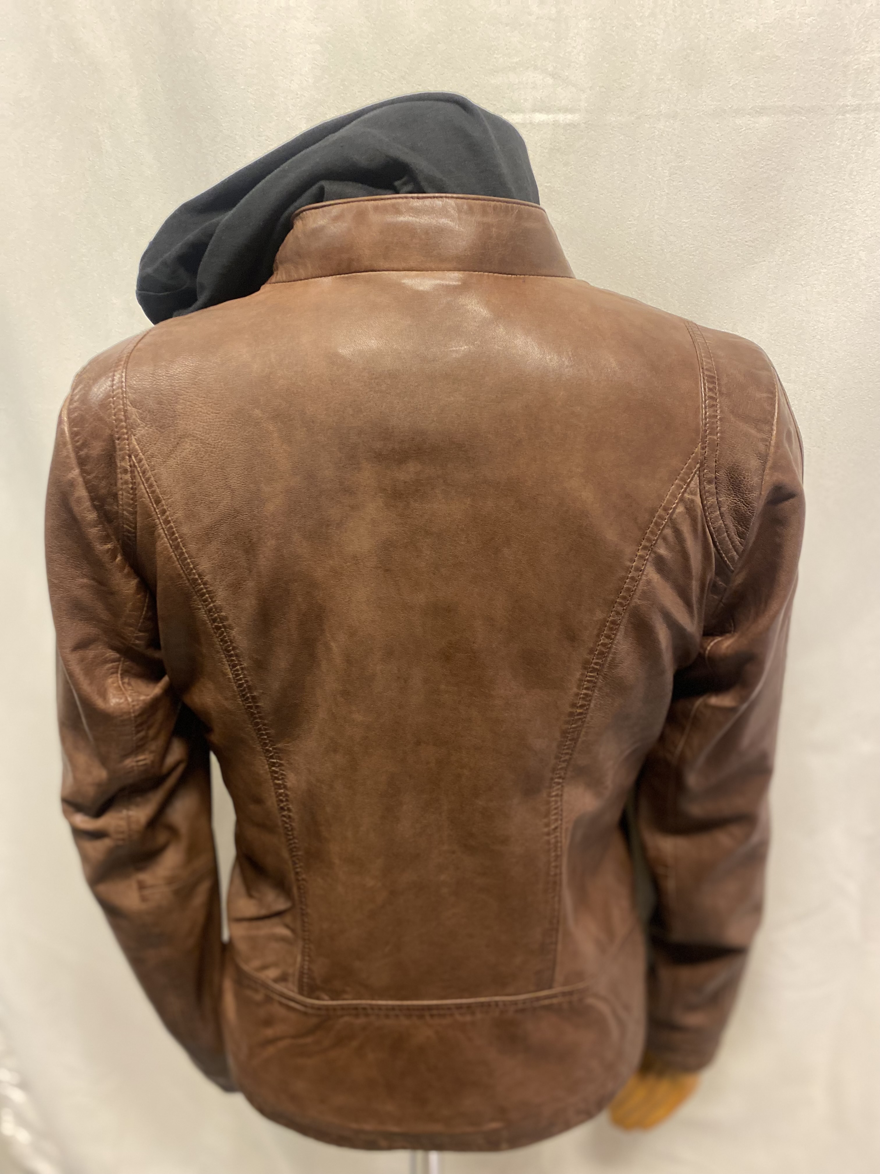 Skinnjacka dam löstagbar hood brun 11327