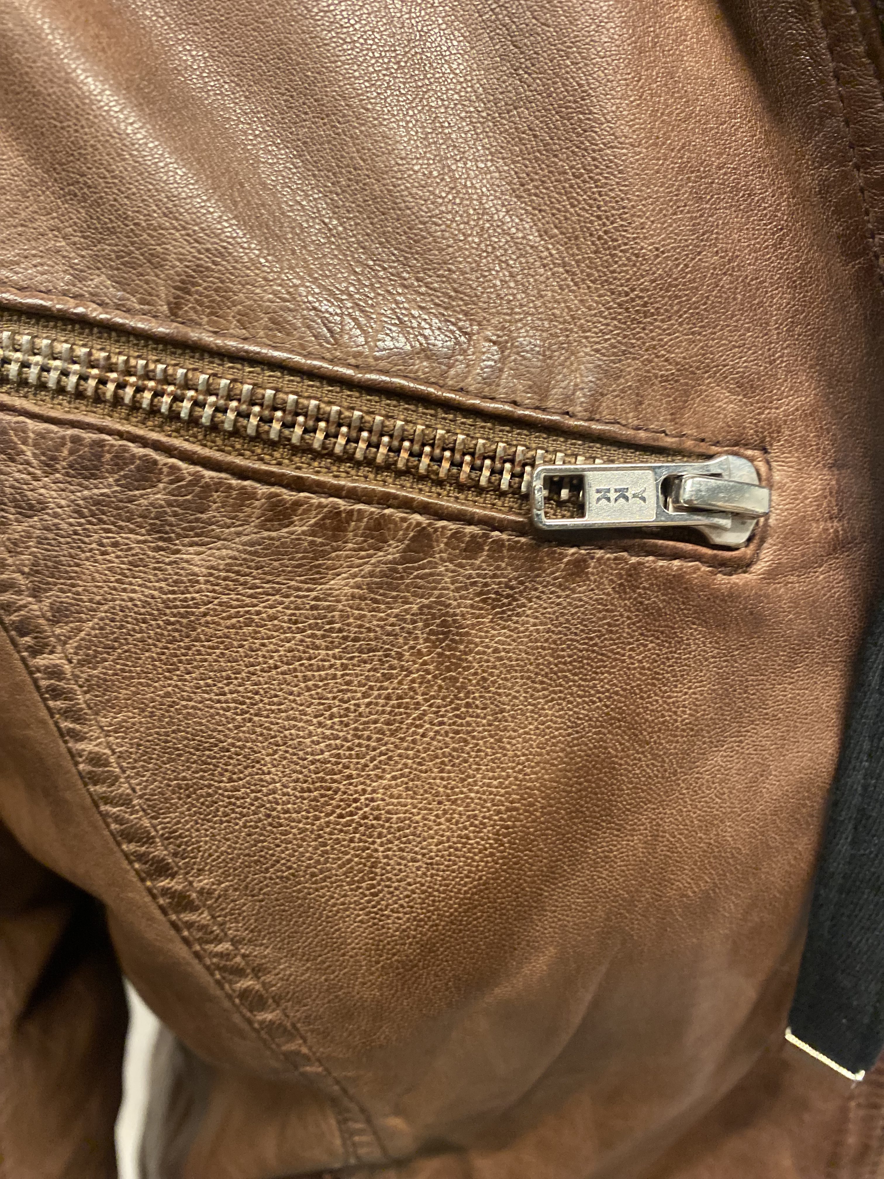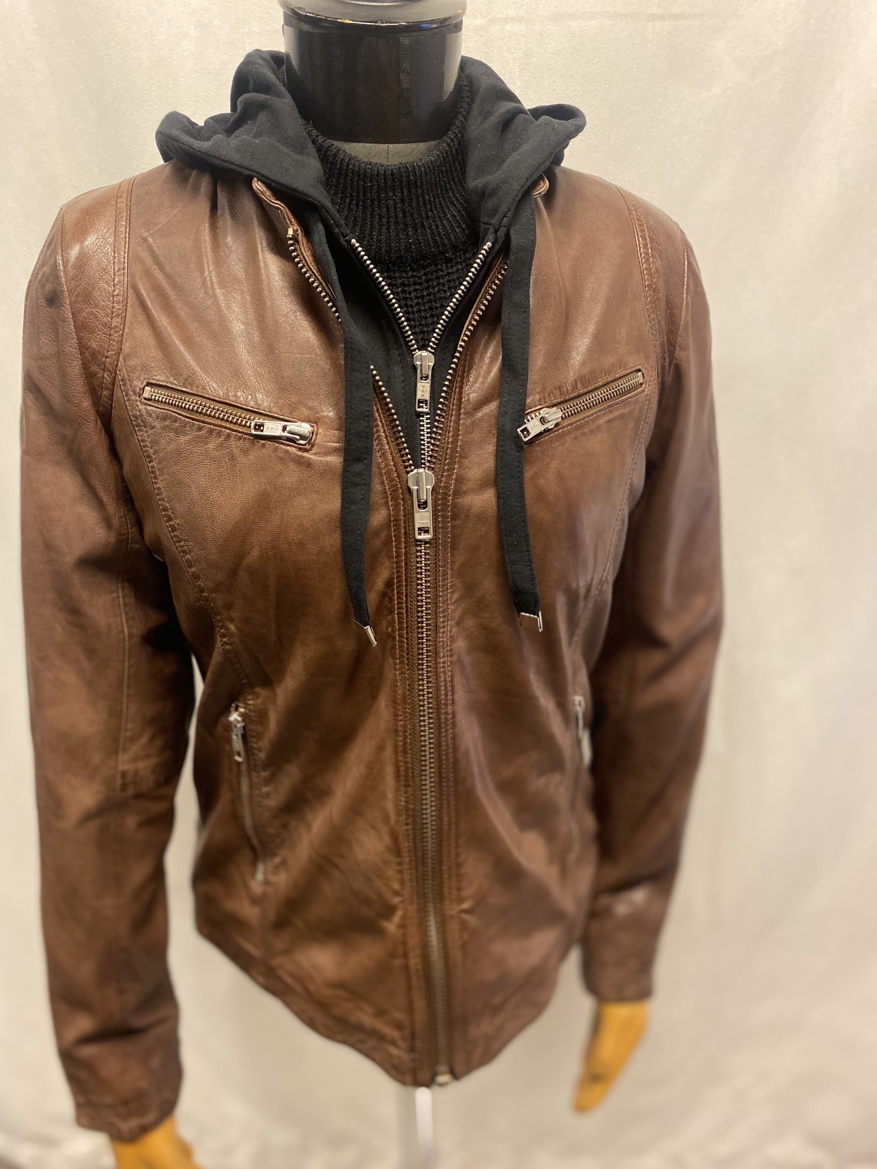 Snygg stilren men ändå tuff skinnjacka i äkta lammskinn bra med fickor samt löstagbar hood